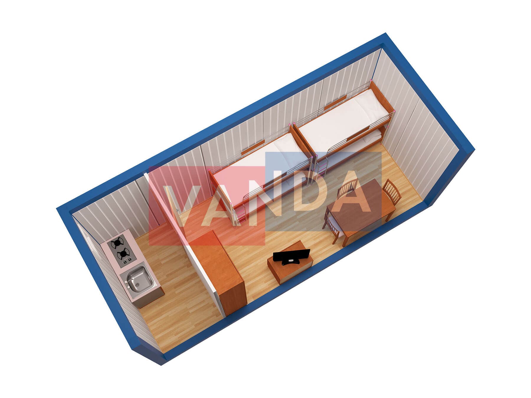 Металлическая бытовка с тамбуром 5,85 x 2,4 - Оргалит ДВП